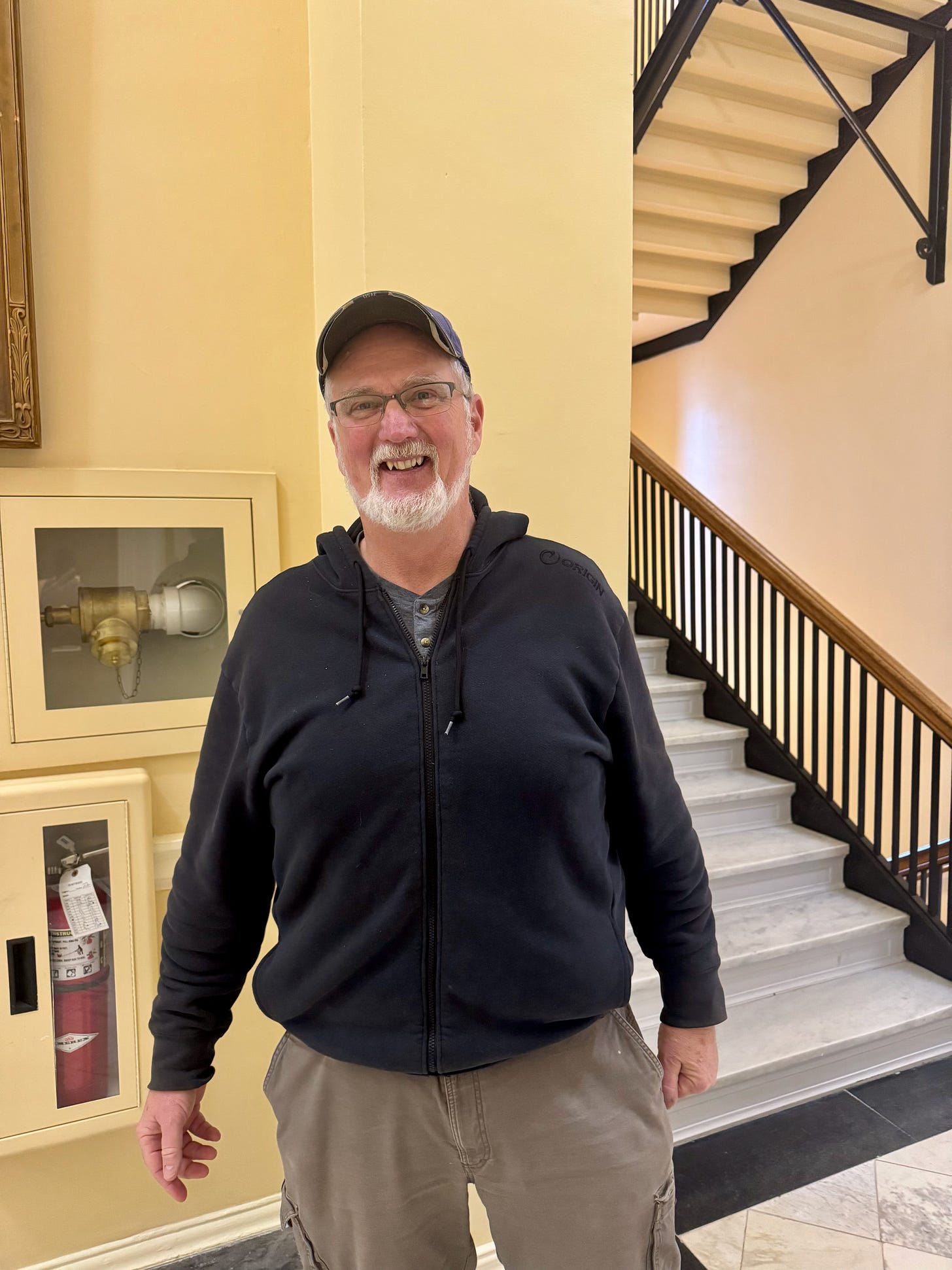 A crowd was just starting to gather, as I introduced myself to a man standing near the exhibit table in a dark sweatshirt and ball cap, a 64-year-old pastor from Fryeberg named Eric Ness.